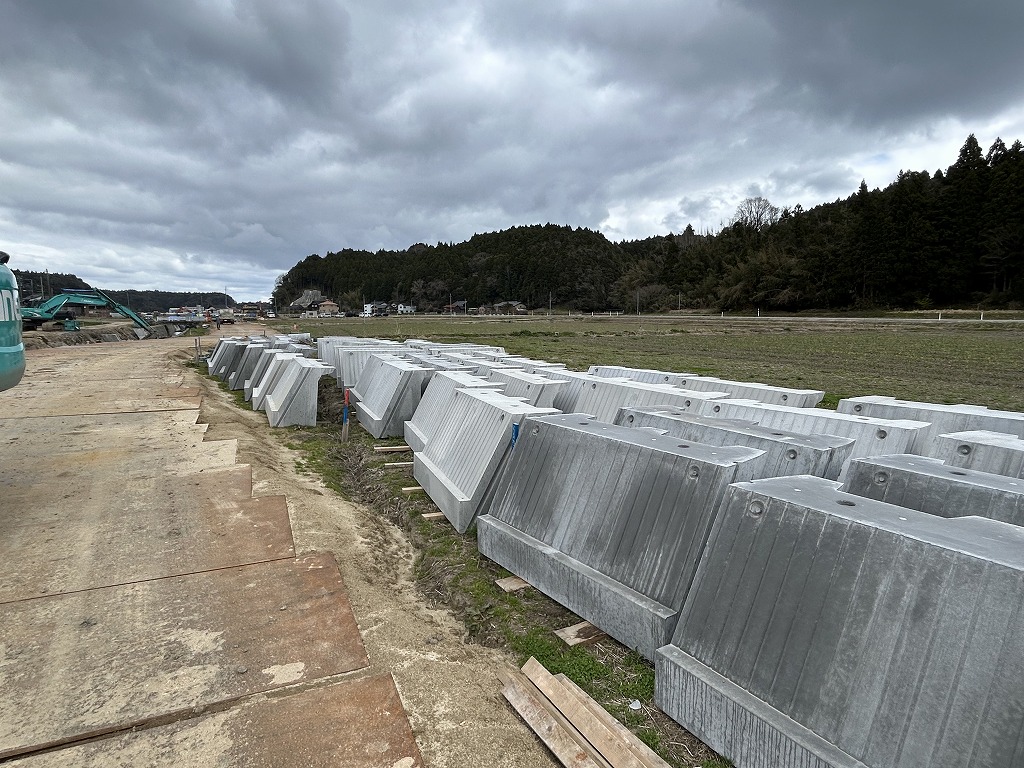 ・専用の大型水平積みブロックを積上げるだけで、直立堤本体工が築造できますので、足場工、支保工、型枠工、鉄筋工を必要とせず、大幅な工期短縮が図れます。
